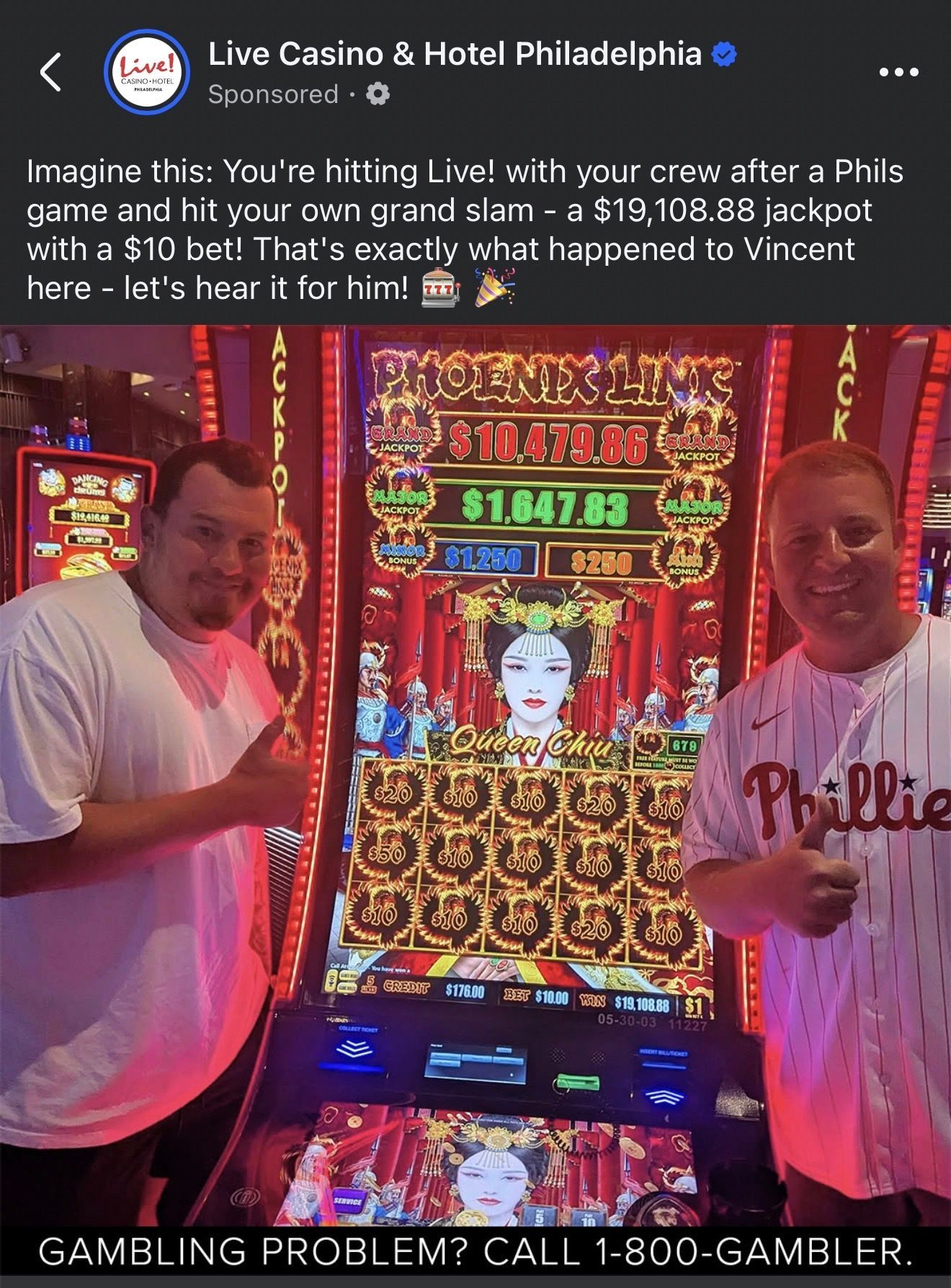 Located at 900 Packer Avenue in the heart of the South Philly Sports Complex, Live! Casino & Hotel features over 2,000 slots, 140+ table games, and a dedicated 29-table poker room for high-energy action all night long. The winning game, Phoenix Link by Aristocrat Gaming, brings blazing visuals and Hold & Spin bonus rounds that can light up any session